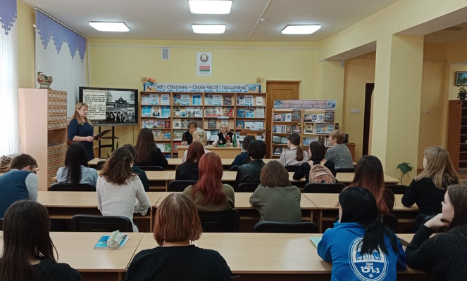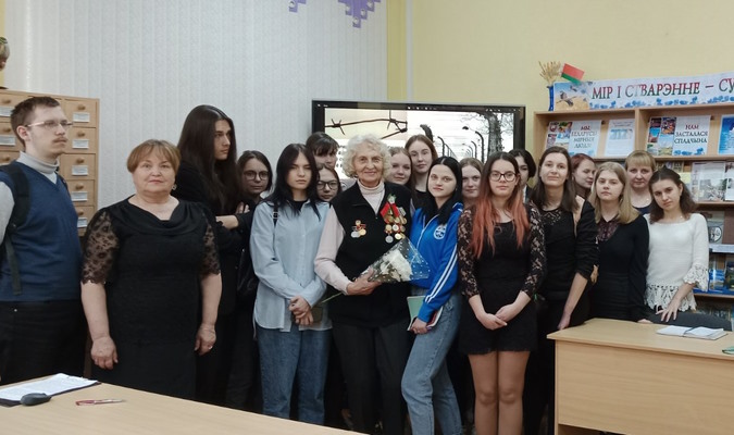 Будущие библиотечные специалисты общались с Рыбцовой Г.И., председателем общественного объединения «Могилевская областная ассоциация малолетних узников фашистской неволи». Для Галины Ивановны это дата не проходящей боли и великой силы, что позволила выстоять, пережить и остаться человеком. Как отметила Рябова Л.А., она, как и многие другие была лишена детства, им достались тяжкие дни фашистского рабства, на их долю выпали тяжелейшие испытания, они познали все тяготы пребывания в концлагерях, с честью выдержали все ужасы фашистской неволи, выросли настоящими патриотами, достойными гражданами своей страны. Деятельно участвуя в жизни нашего города, нашей Родины, стараются укрепить связь поколений, воспитать в молодых людях любовь и уважение к Отчизне, сохранить память о великой Победе нашего народа. Эта – наша живая история, это последние свидетели фашистского геноцида белорусского народа.