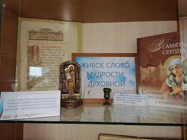 Ко Дню православной книги центральная городская библиотека им. К. Маркса совместно с церковно-археологическим кабинетом духовно-просветительского центра им. святителя Георгия Конисского организовала выставку-инсталляцию «Живое слово мудрости духовной».