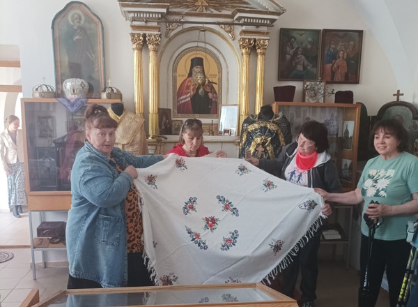 С. Шевцова подарила церковно- археологическому кабинету скатерть, вышитую ее бабушкой.
