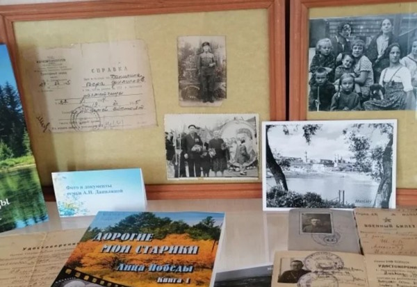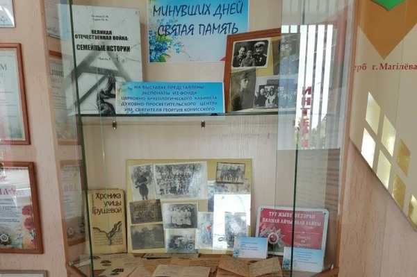 Посетители библиотеки могут познакомиться с документами и фотографиями военных лет: справки об эвакуации, удостоверения личности, военный билет, наградные листы, записная книжка, рисунки партизан, фотоснимки, наградные документы — все эти документы, представленные на выставке, рассказывают о жизни могилевчан в военное время.