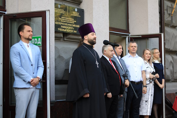 Новых студентов благословил иерей, священник Спасо-Преображенского кафедрального собора г. Могилева, руководитель епархиального отдела церковного образования и катехизации Алексей Васильевич Науменко.