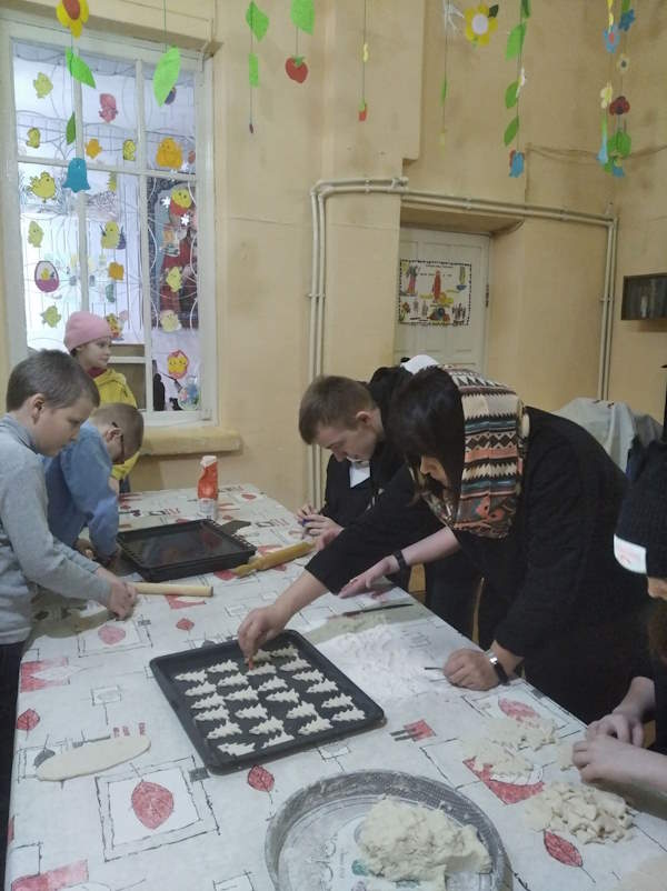 В храме Воскресения Христова г. Кричев идёт подготовка к празднованию Рождества Христова. Из соленого теста изготавливают ёлочные украшения для поздравления прихожан.