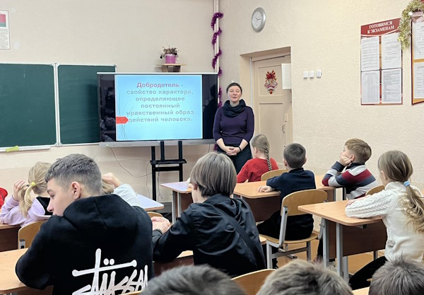 03 января 2024 года в рамках проекта «Научим сердце добру» психолог ДПЦ имени святителя Георгия (Конисского) Ярослава Банько провела с учащимися подучетных категорий государственного учреждения образования «Средняя школа № 26 г. Могилева» тренинг «Христианские добродетели».