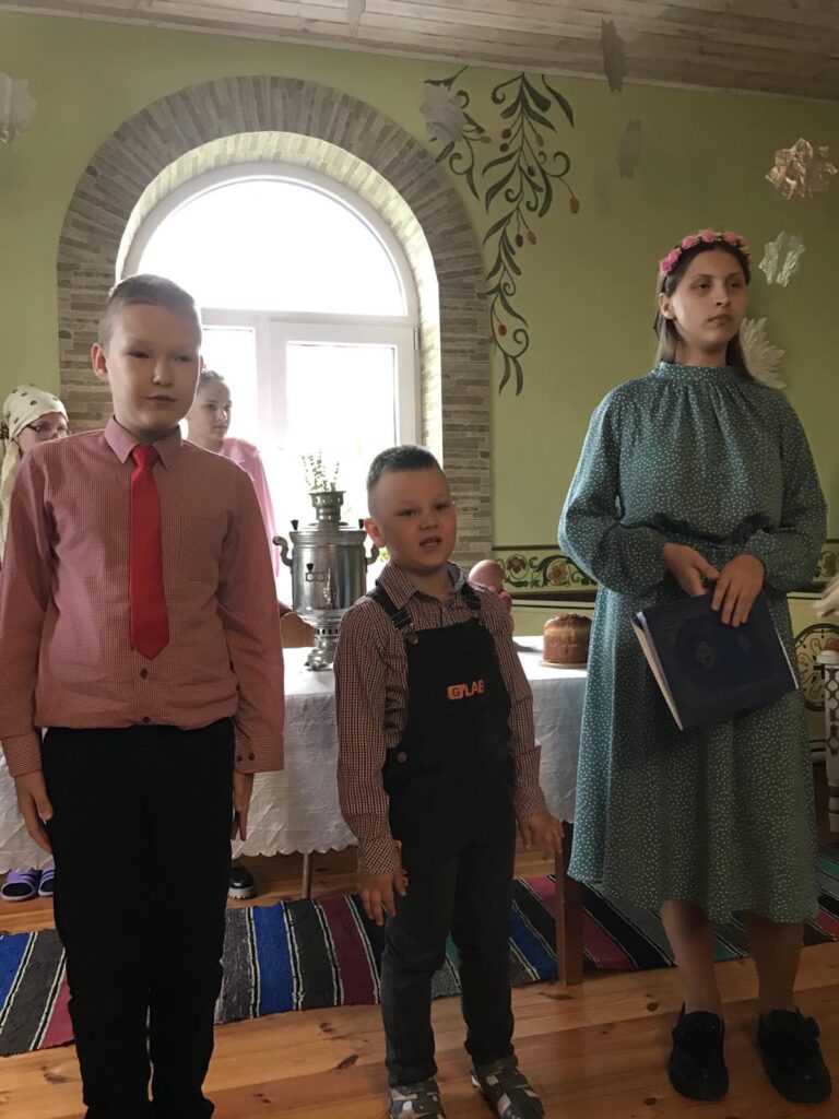 4 мая 2025 г. в воскресной школе Спасо-Преображенского храма г.Шклова в день празднования святых жен-мироносиц прошел пасхальный утренник с приглашением родителей и прихожан храма.